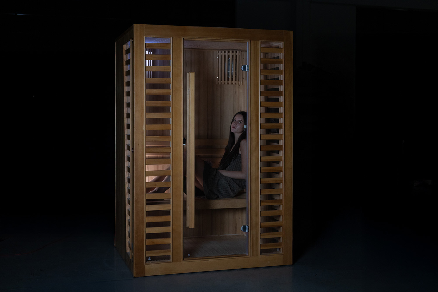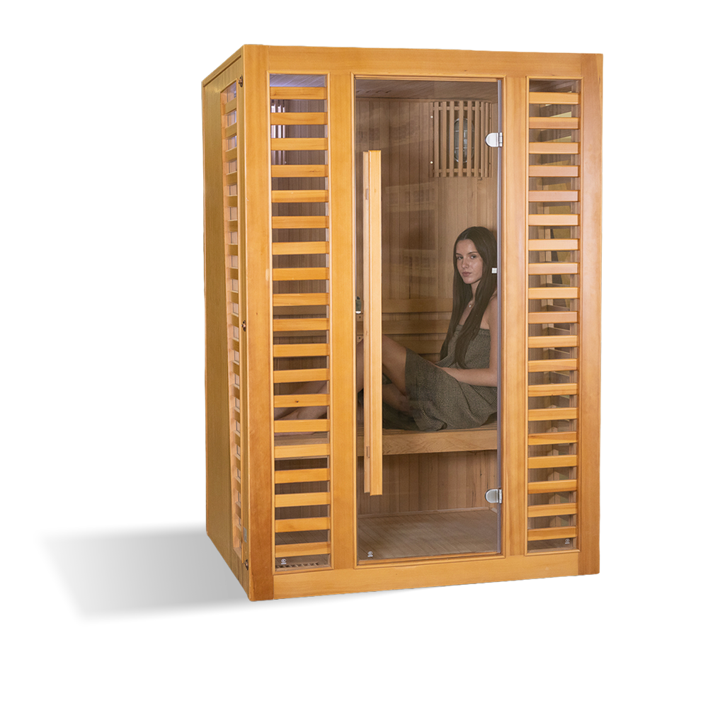Elegantní domácí tradiční finská sauna Luonto 2 je navržena pro dvě osoby a vyrobena z kanadského smrku. Tato sauna se hodí do interiéru rodinného domu i bytu.