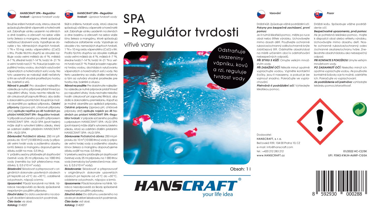 HANSCRAFT SPA - Regulátor tvrdosti