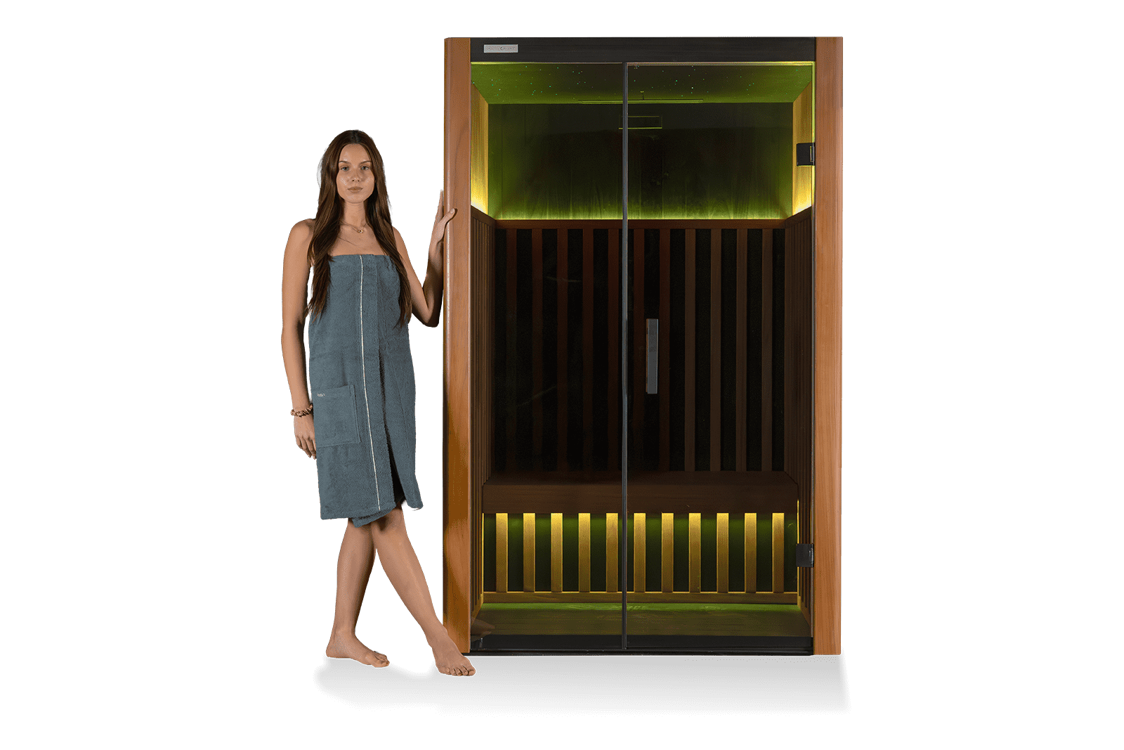 Sauna je vybavena účinným infračerveným topným systémem s nano uhlíkovou fólií, který zajišťuje rovnoměrné, komfortní a energeticky úsporné prohřívání prostoru. Díky promyšlenému rozmístění topných desek je infračervené teplo distribuováno rovnoměrně po celé sauně a působí příjemně na celé tělo. Infra sauna využívá zářiče IR-C, které vytváří jemné, rovnoměrné sálavé teplo a přispívají k celkovému uvolnění a regeneraci.