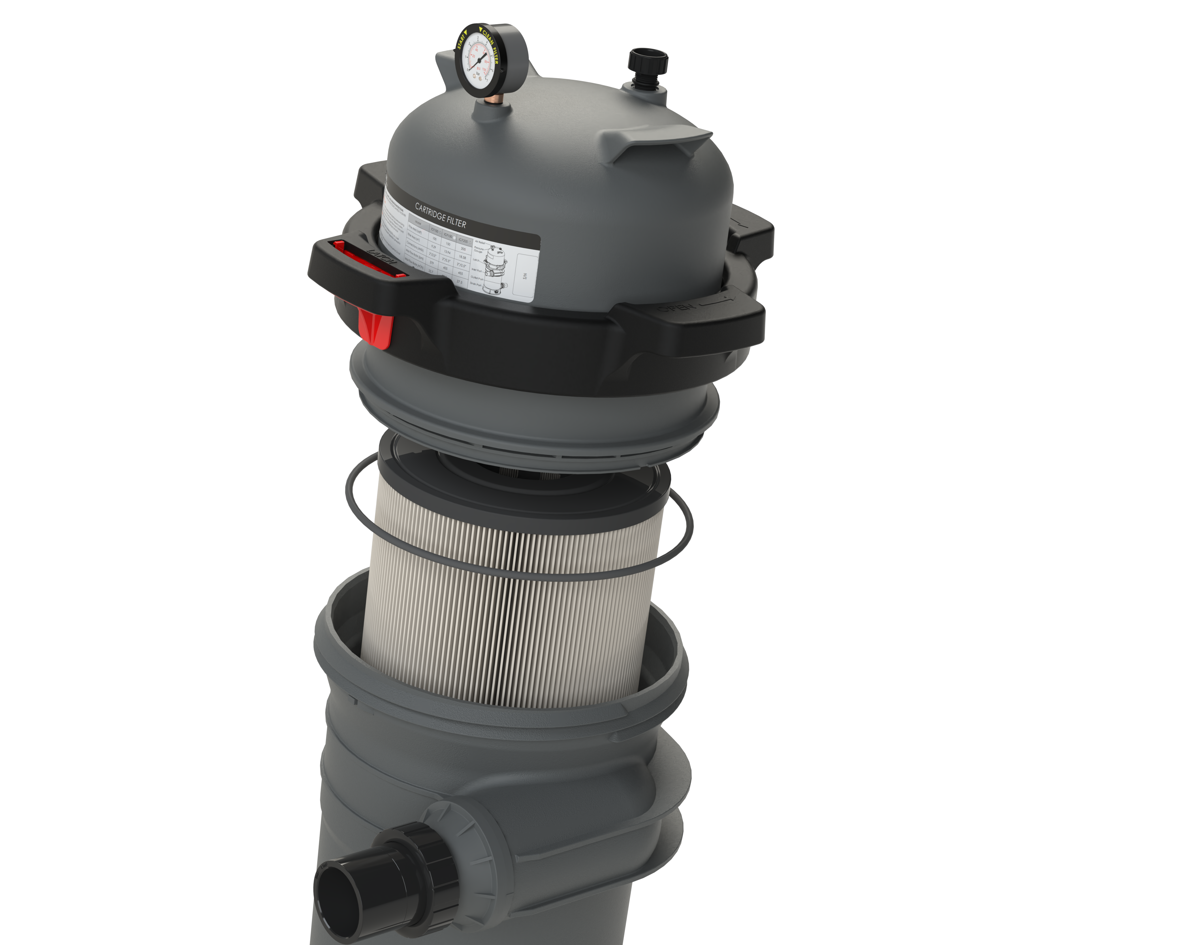 Díky 4 montážním otvorům a snadno uchopitelné rukojeti krytu byl Thinclear Mono navržen pro snadné použití ve všech situacích. Tlakoměr ukazuje, kdy je třeba provést údržbu bazénu, a výška dna nádrže po kolena usnadňuje výměnu kartuše.